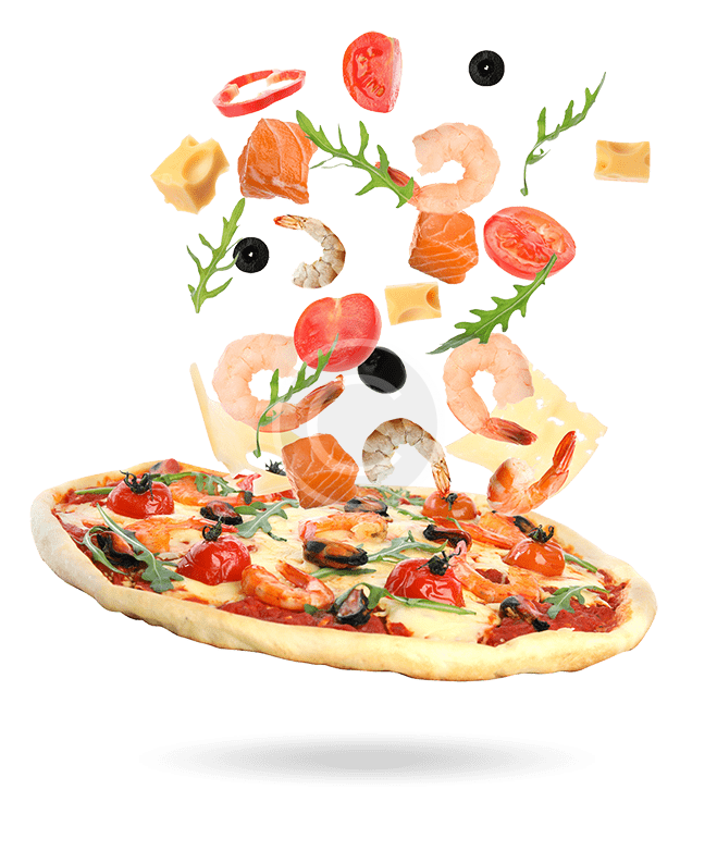 Pomidorų padažas, sūris*, pievagrybiai, kon. Paprika, juodos alyvuogės, svogūnai, cezario užpilas